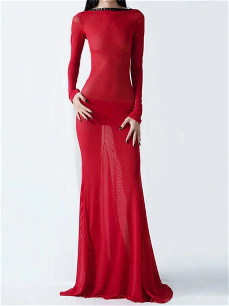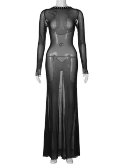 Women See Through Mesh Long Dress
