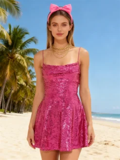 Shiny sequins, ruched bust, adjustable straps, bandage and backless, summer dresses for women, beach dresses for women, mini length and A-line design to make the legs more slender and make you look slimmer.